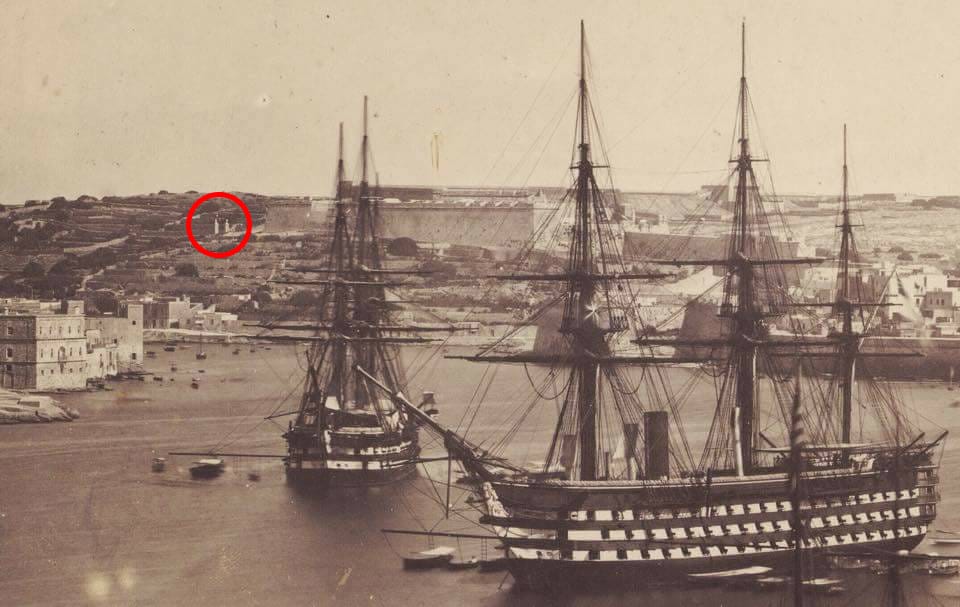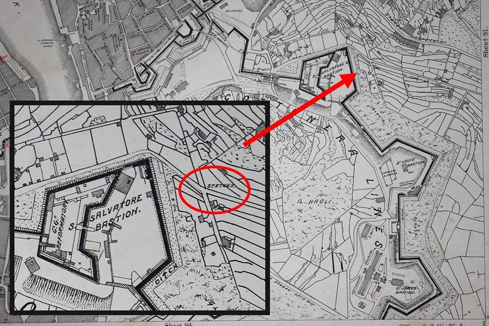 Is-Survey Map li qed nirriproduċu tal-bidu tas-seklu 20 timmarka l-post eżatt fejn kienu jinstabu l-pedestalli u l-istatwi, filwaqt li r-ritratt l-antik li qed jiġi riprodott juri l-Port l-Kbir ta’ Malta bid-daħla tal-Kalkara (ċ. 1860) u fl-isfond jidhru ż-żewġ statwi.